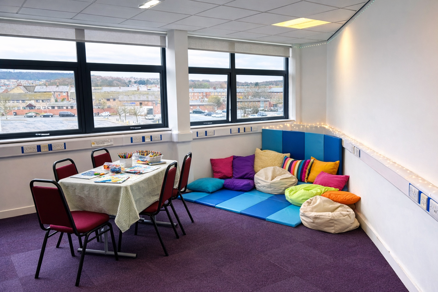 Children are welcome in our kids corner - a calm space where they can relax, use our craft table and fidgets, bring their own tablets or games, and use our free WiFi.